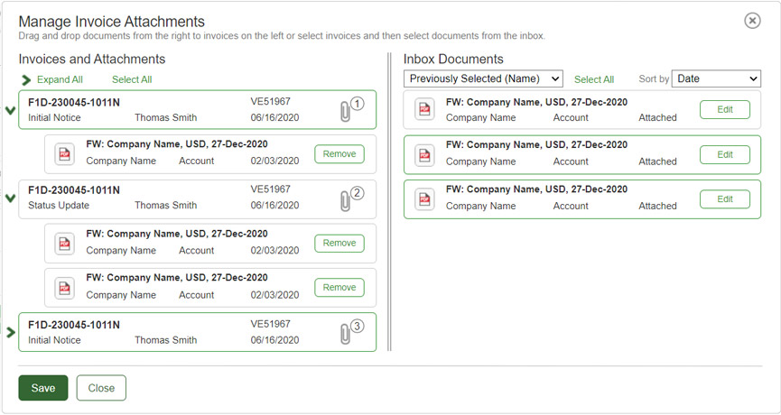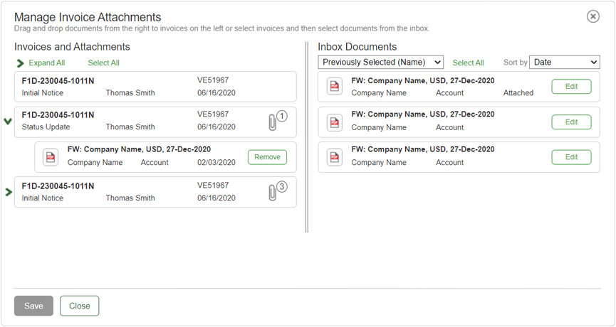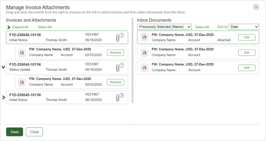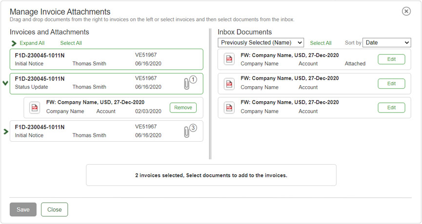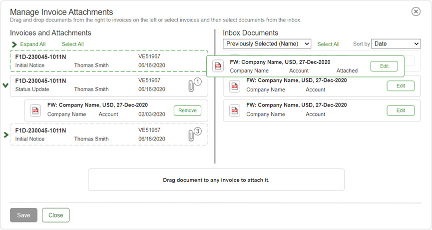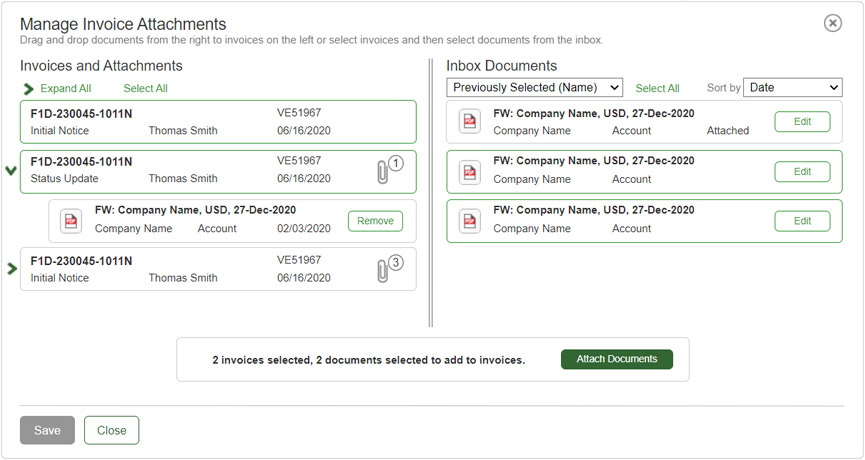Our users wanted to enhance and update their current attachment management system. They wanted to be able to select and move attachments from their inbox and/or another person's inbox to an invoice.