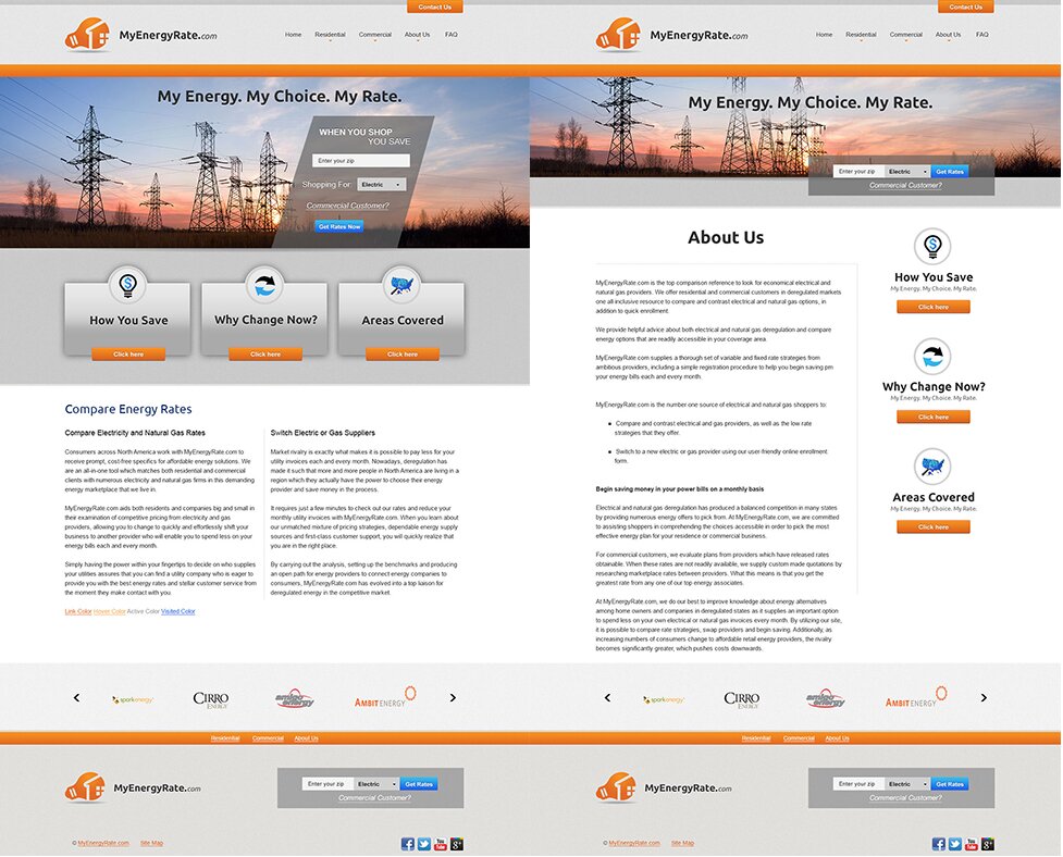 MyEnergyRate.com was a company selling electric plans and gas plans in states that allowed people go out and shop for utilities and save money by doing so. They were a comparison site. The client could go on and compare what they could be paying with what they were currently paying.